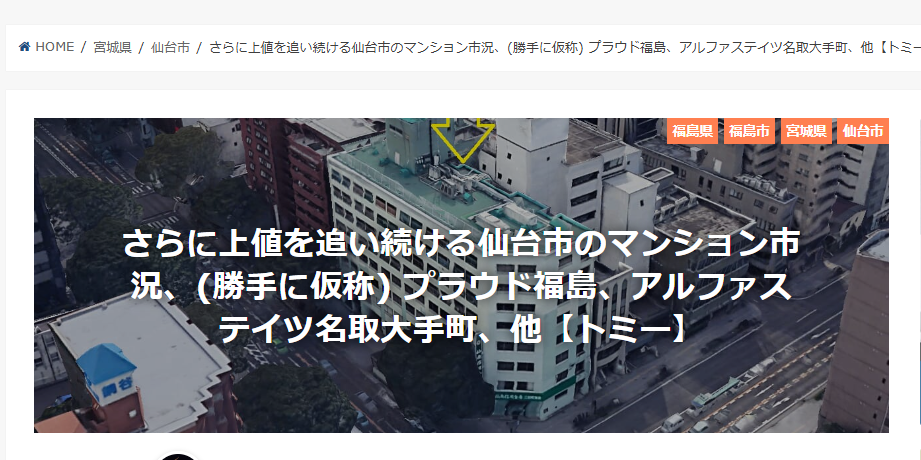 さらに上値を追い続ける仙台市のマンション市況、(勝手に仮称) プラウド福島、アルファステイツ名取大手町、他【トミー】 | スムラボ