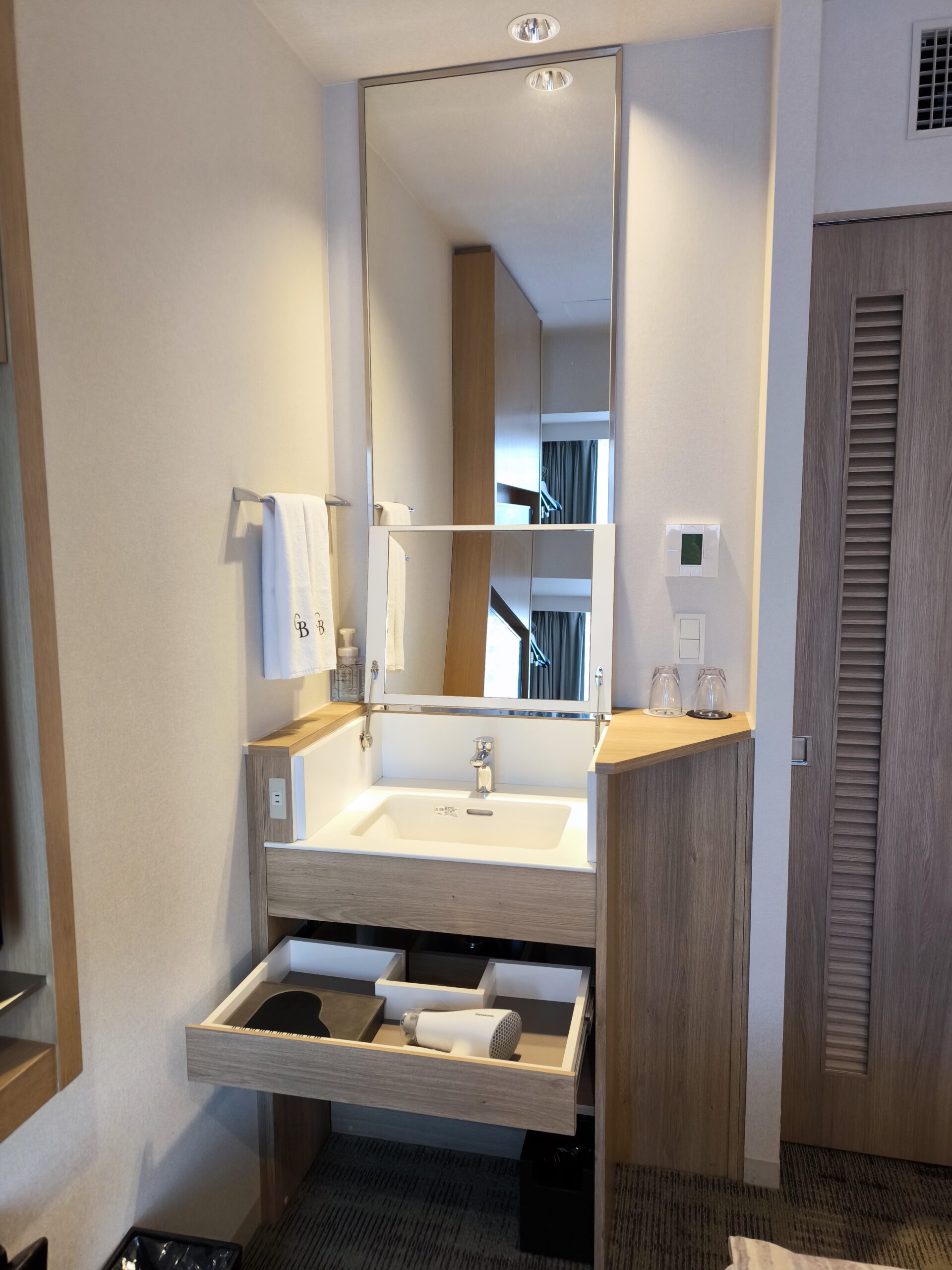 - 客室は、トイレとバスルームがセパレートなのは良いですが、マスタールームに詰め込みすぎざるを得ず、動線としてはアパホテルのような狭さと移動しにくさを感じます。