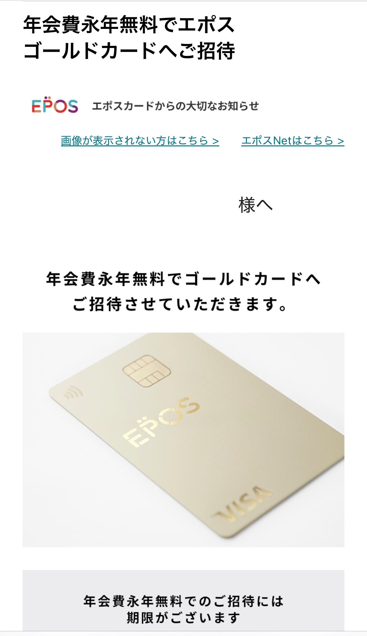 タイトルのとおりですが、クレジットカードの一つであるエポスカードについて、ゴールドランクのインビテーションが届いたので、その紹介をしていきます。