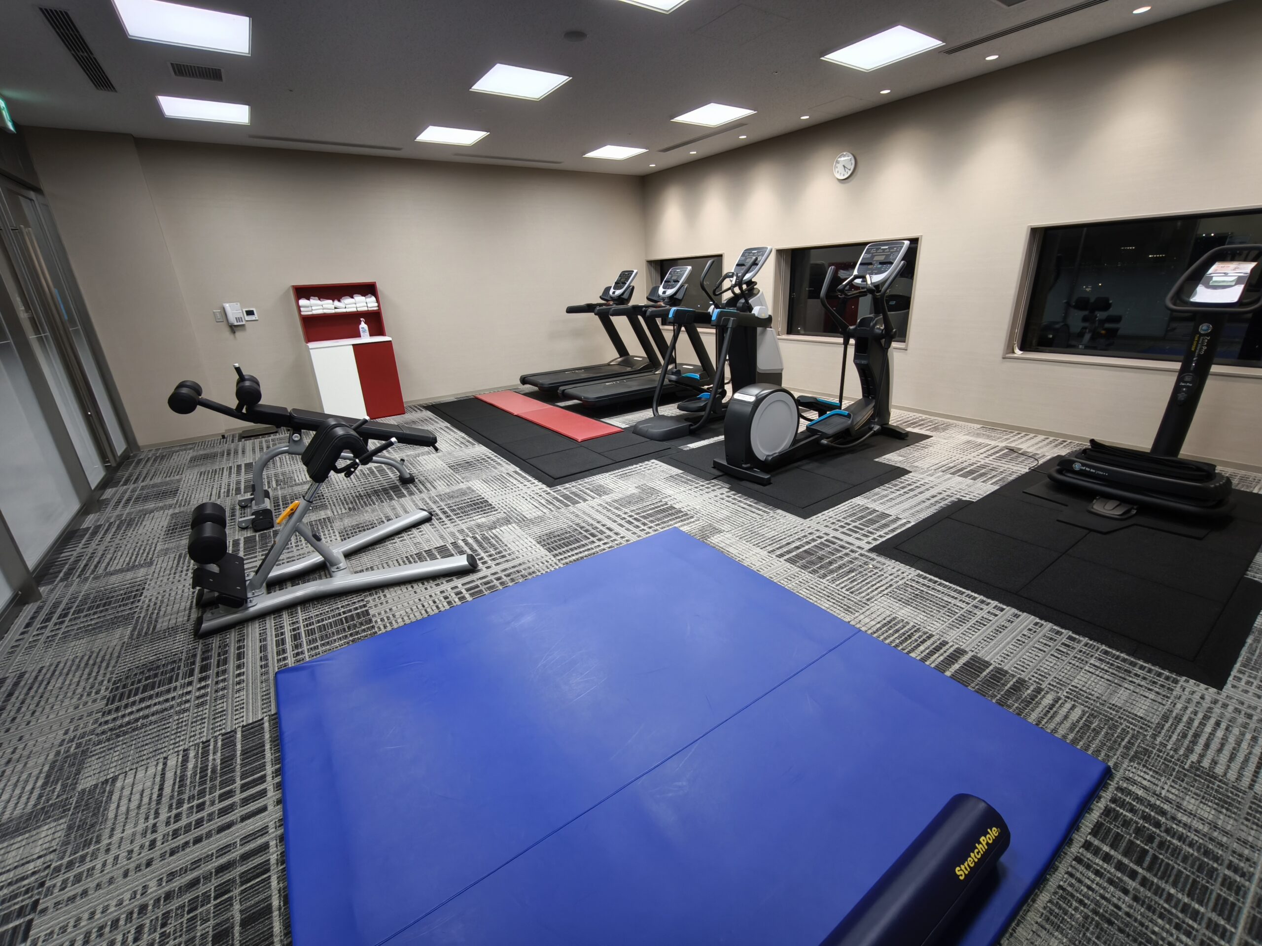 - 設備: ランニングマシン、エプティカルトレーナー、 トレーニングベンチ、エクササイズマットなど
