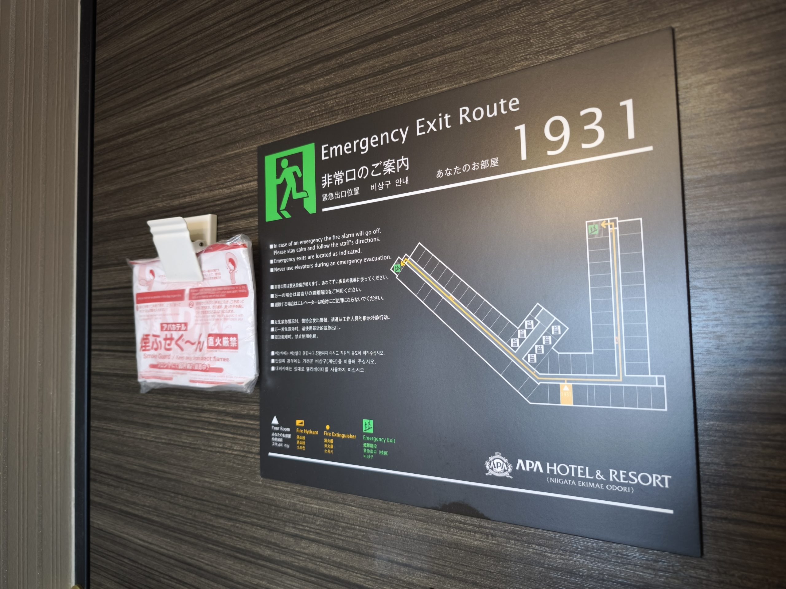 - 客室については、全体的に壁紙にアクセントクロスを設えていますが、開業してちょうど4年が経過していますので、やや痛んでいました。それ以外はいつものアパホテルと言った感じで特に気になる点はありませんでしたが、シーリングライトの明るさ調整ができればなお良いかなとは思っています。